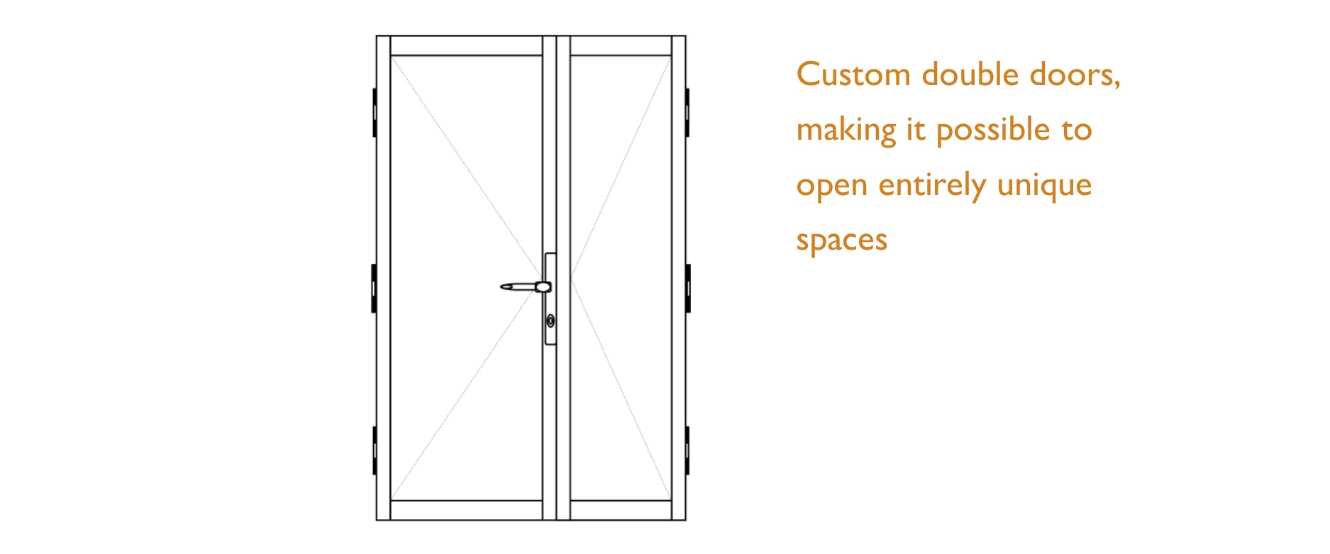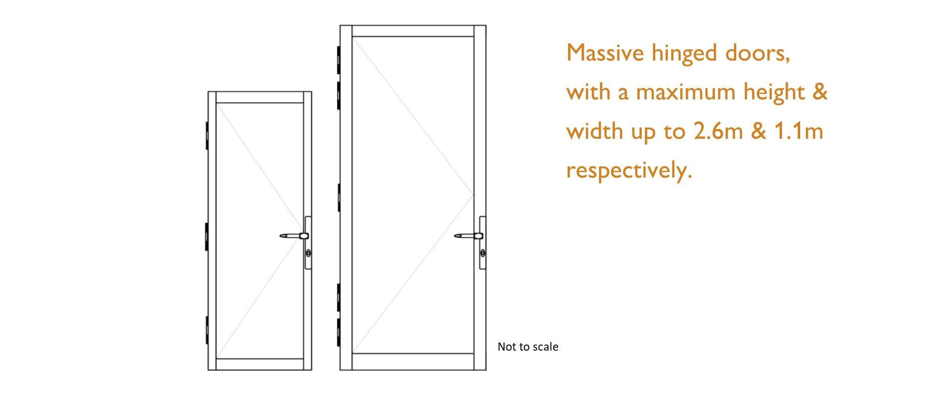 The outer frame of these hinged doors is fabricated from sturdy extruded aluminium